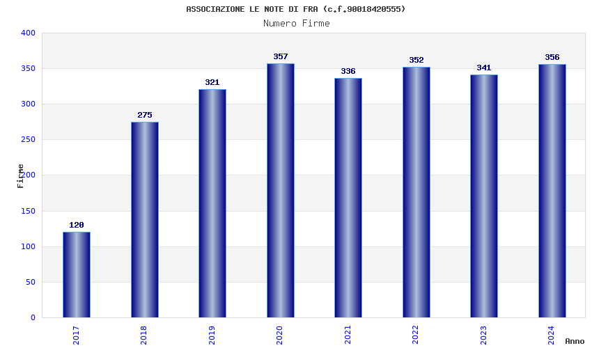 | Anno | Firme | Importi | Media | Naz. | Reg. | Prov. | Comu. |