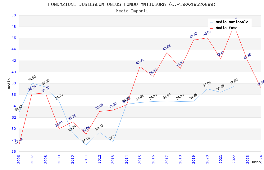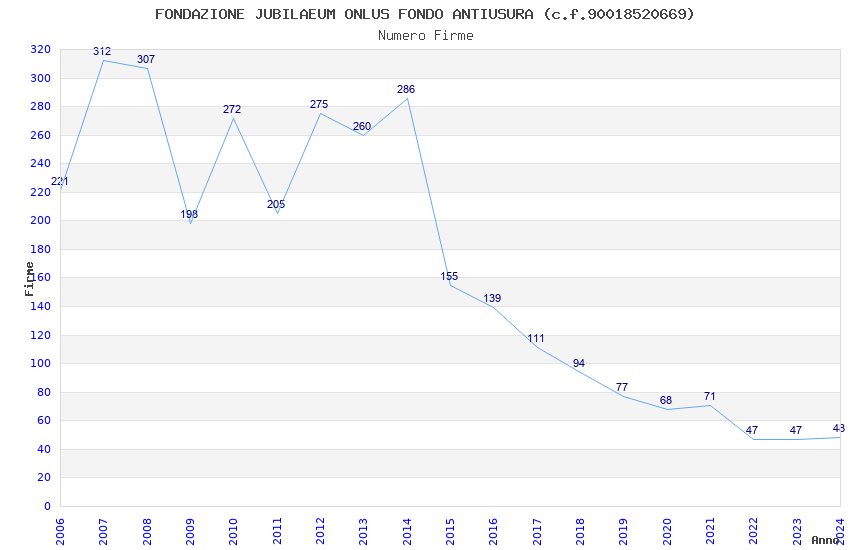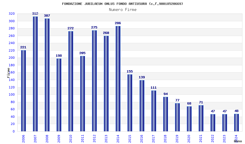 | Anno | Firme | Importi | Media | Naz. | Reg. | Prov. | Comu. |