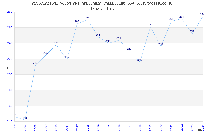 | 2024 | 274 | 5.832,01 | 21,28 | 9.107 | 594 | 85 | 1 |