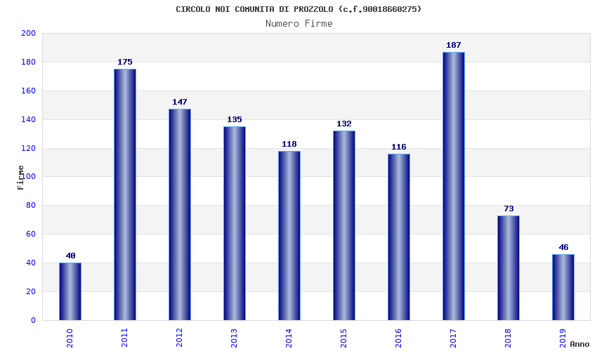 | Anno | Firme | Importi | Media | Naz. | Reg. | Prov. | Comu. |