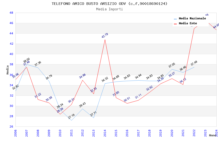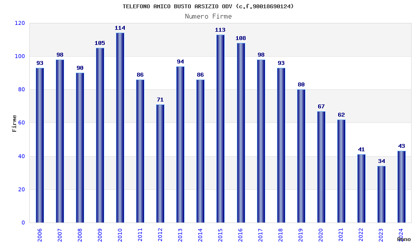 | Anno | Firme | Importi | Media | Naz. | Reg. | Prov. | Comu. |