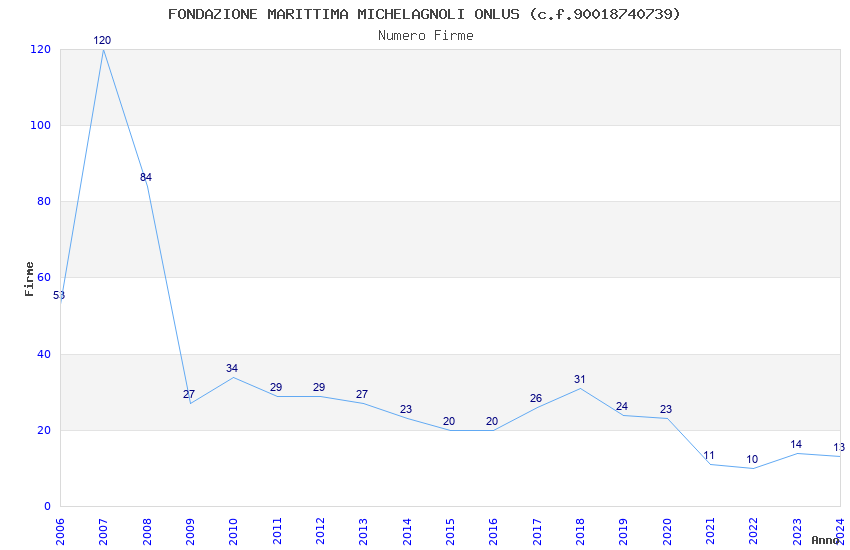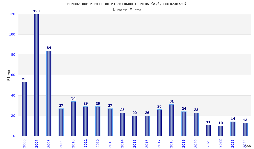 | Anno | Firme | Importi | Media | Naz. | Reg. | Prov. | Comu. |