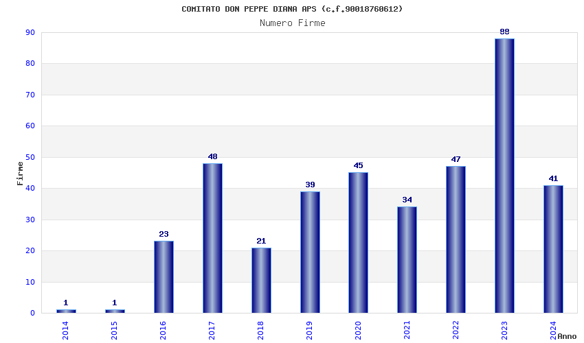 | Anno | Firme | Importi | Media | Naz. | Reg. | Prov. | Comu. |