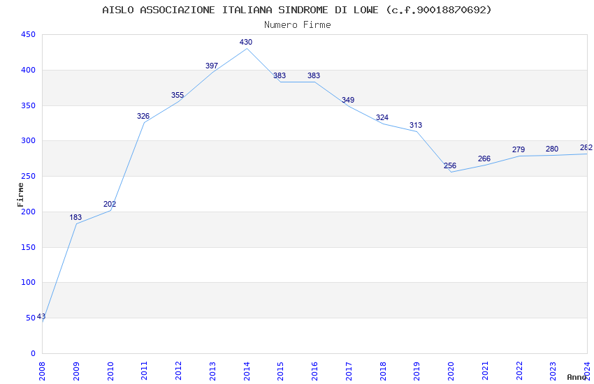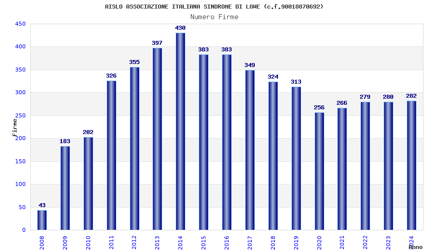 | Anno | Firme | Importi | Media | Naz. | Reg. | Prov. | Comu. |