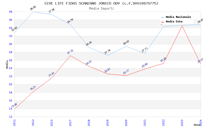 | Anno | Firme | Importi | Media | Naz. | Reg. | Prov. | Comu. |