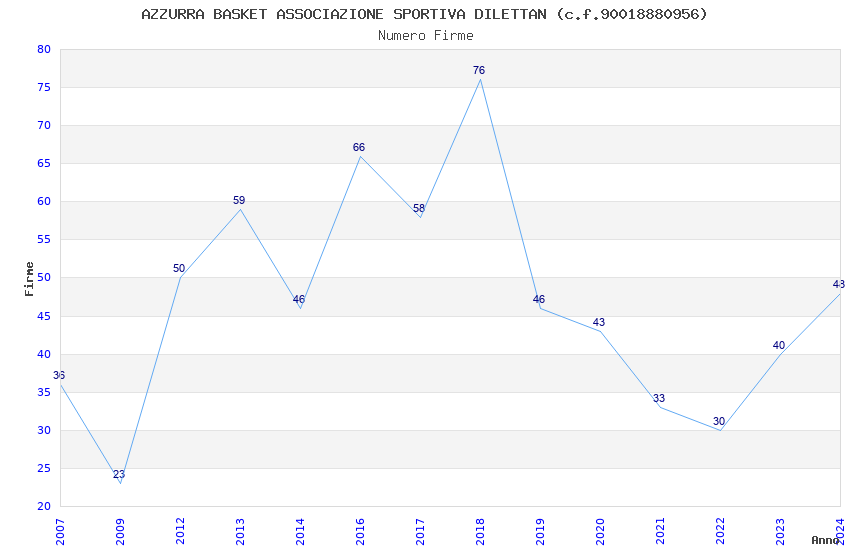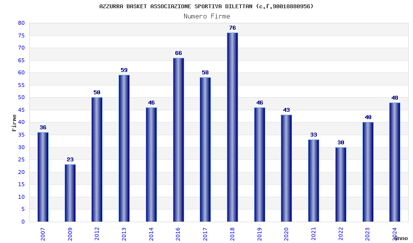 | 2018 | 76 | 2.276,89 | 29,96 | 21.602 | 417 | 34 | 11 |