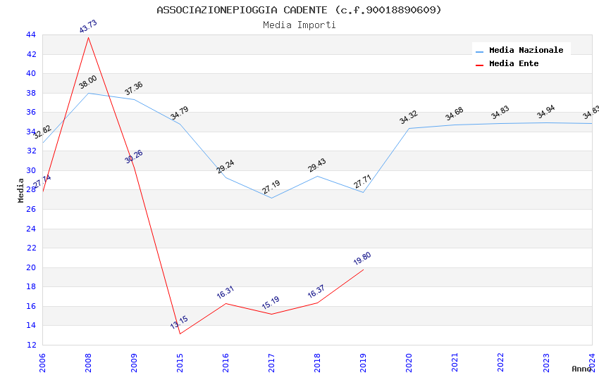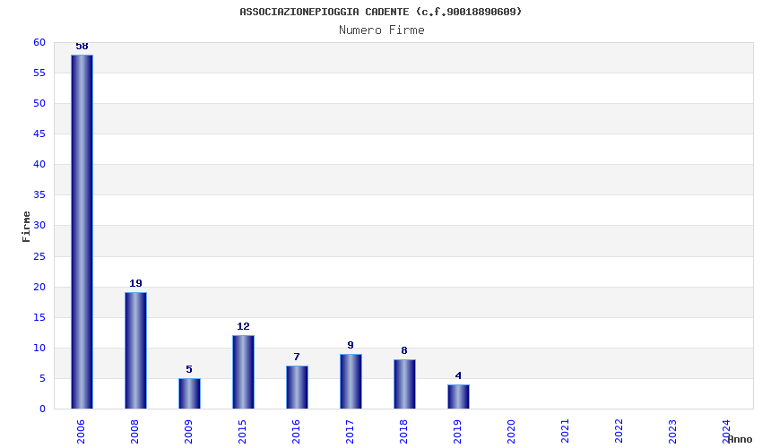 | Anno | Firme | Importi | Media | Naz. | Reg. | Prov. | Comu. |
