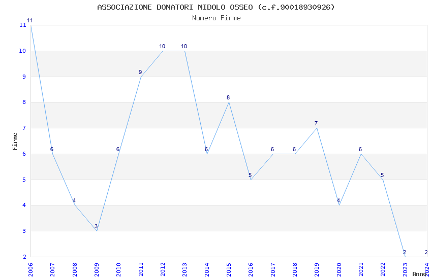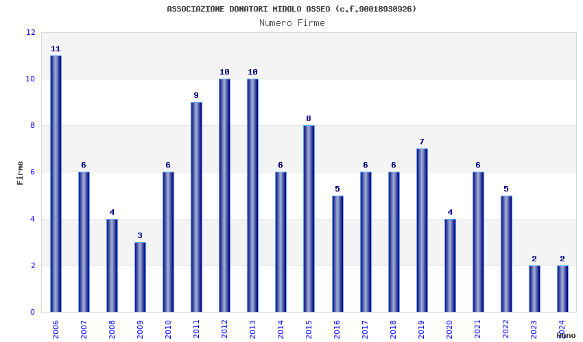 | Anno | Firme | Importi | Media | Naz. | Reg. | Prov. | Comu. |