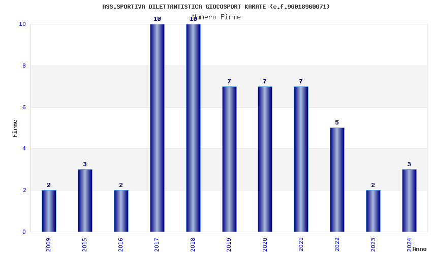 | Anno | Firme | Importi | Media | Naz. | Reg. | Prov. | Comu. |