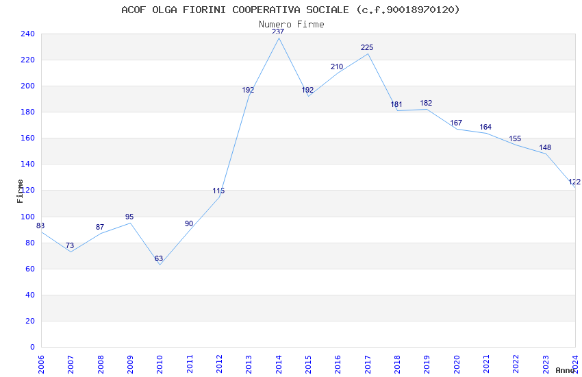 | 2014 | 237 | 6.627,99 | 27,97 | 8.191 | 1.916 | 153 | 22 |
