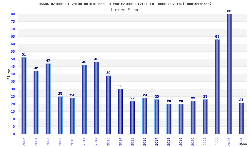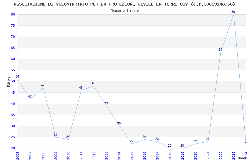 | 2023 | 80 | 1.950,18 | 24,38 | 24.069 | 1.289 | 231 | 1 |