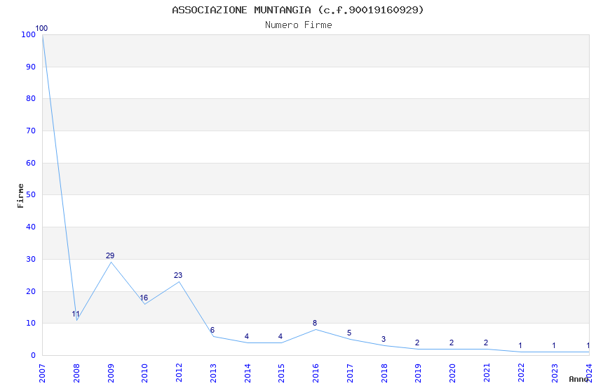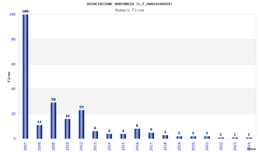 | Anno | Firme | Importi | Media | Naz. | Reg. | Prov. | Comu. |