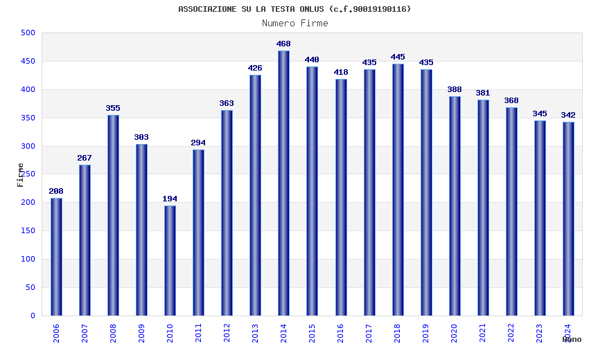 | Anno | Firme | Importi | Media | Naz. | Reg. | Prov. | Comu. |