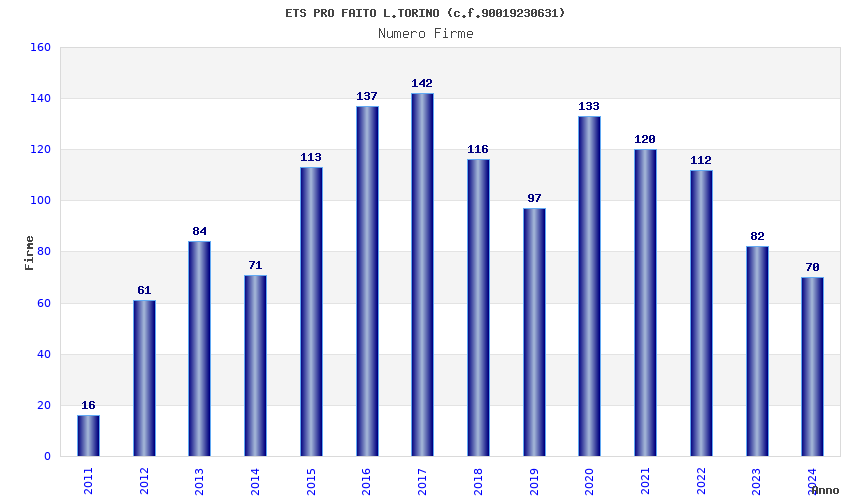 | Anno | Firme | Importi | Media | Naz. | Reg. | Prov. | Comu. |