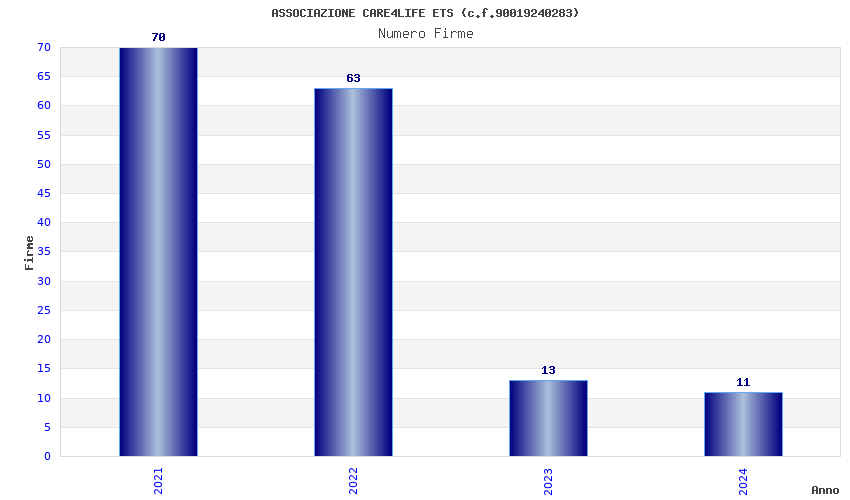 | Anno | Firme | Importi | Media | Naz. | Reg. | Prov. | Comu. |