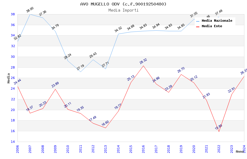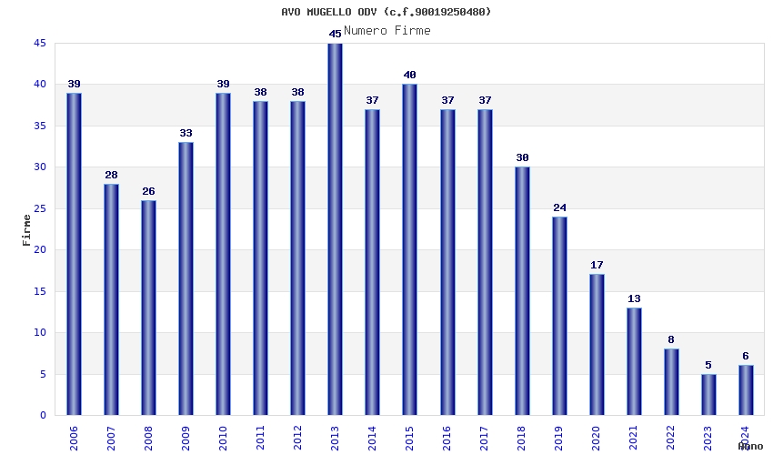 | Anno | Firme | Importi | Media | Naz. | Reg. | Prov. | Comu. |