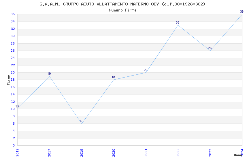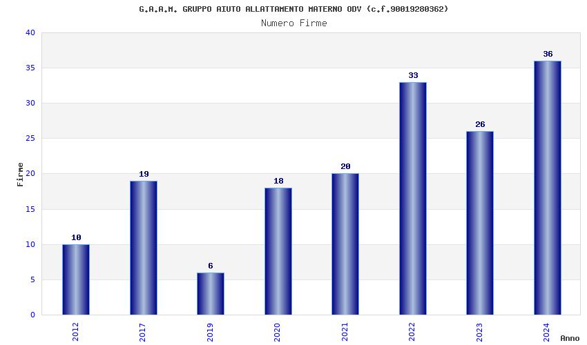| Anno | Firme | Importi | Media | Naz. | Reg. | Prov. | Comu. |