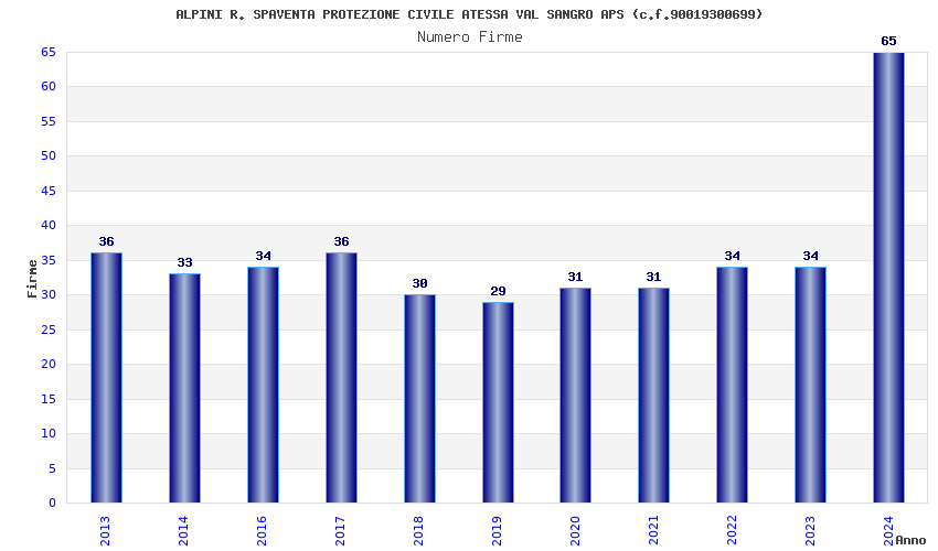 | 2024 | 65 | 1.365,64 | 21,01 | 31.301 | 599 | 152 | 5 |