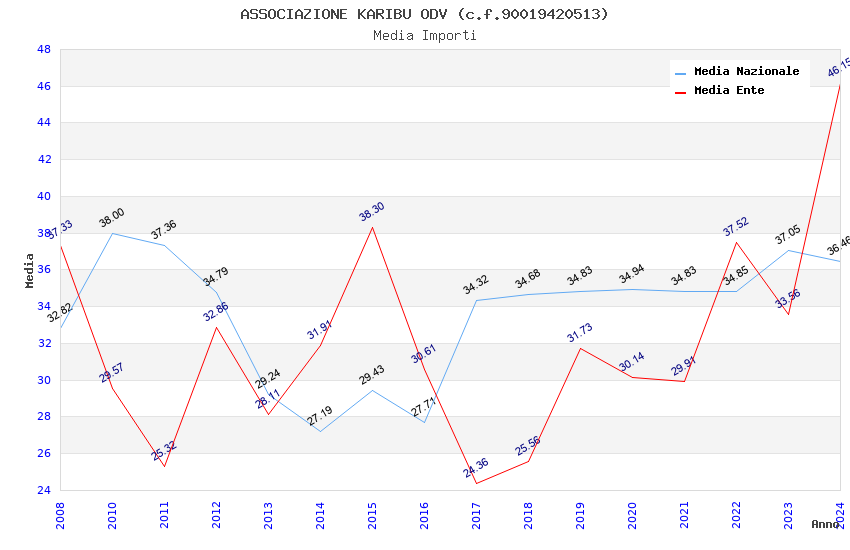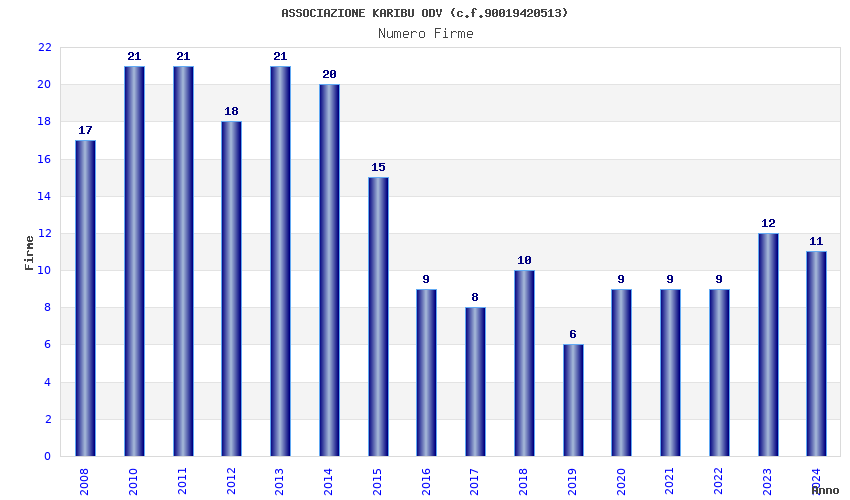 | Anno | Firme | Importi | Media | Naz. | Reg. | Prov. | Comu. |