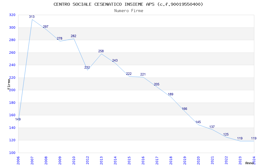 | 2023 | 119 | 2.038,44 | 17,13 | 23.299 | 2.026 | 188 | 10 |