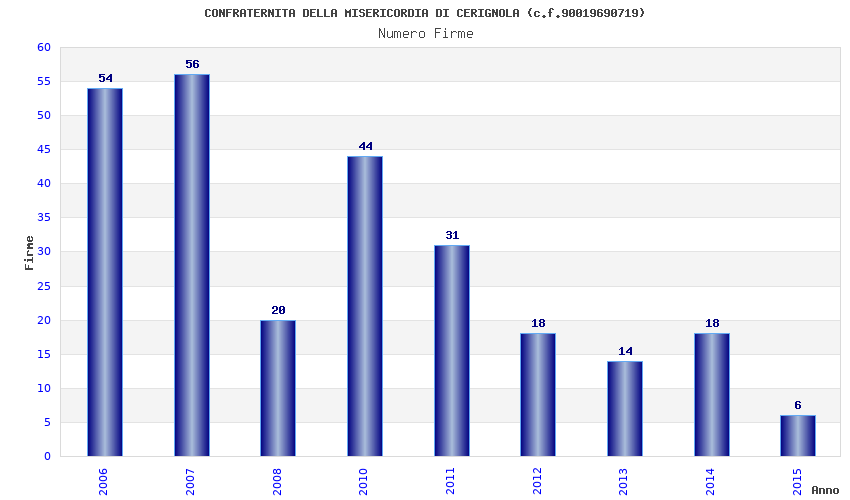 | Anno | Firme | Importi | Media | Naz. | Reg. | Prov. | Comu. |