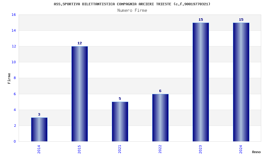 | Anno | Firme | Importi | Media | Naz. | Reg. | Prov. | Comu. |
