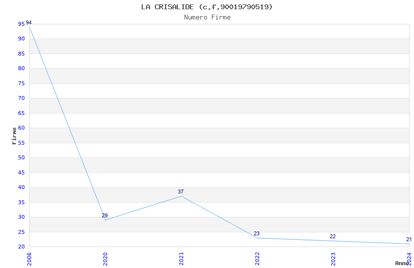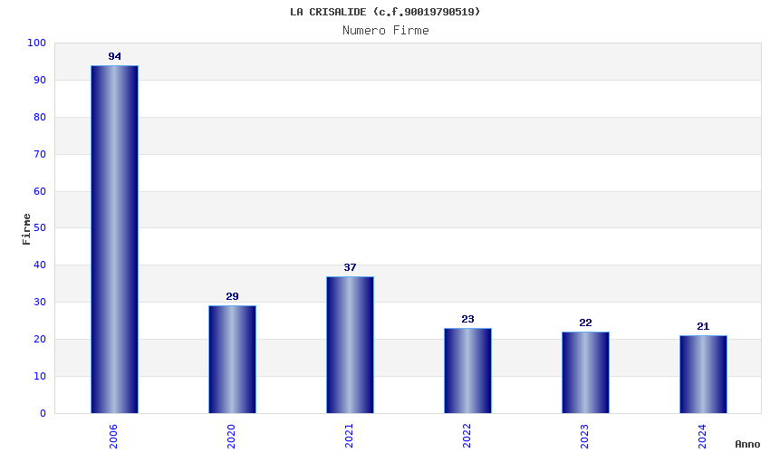 | Anno | Firme | Importi | Media | Naz. | Reg. | Prov. | Comu. |