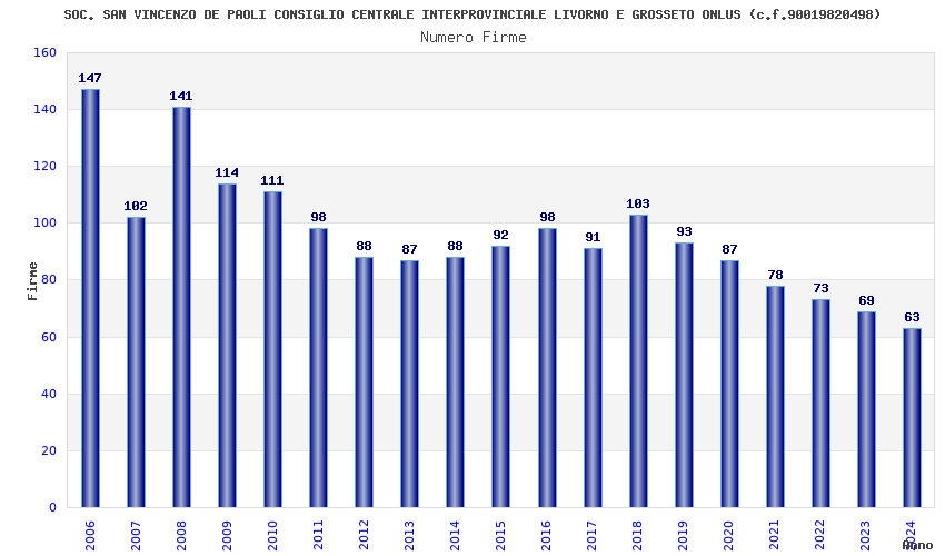 | 2006 | 147 | 3.855,36 | 26,23 | 10.060 | 668 | 46 | 5 |