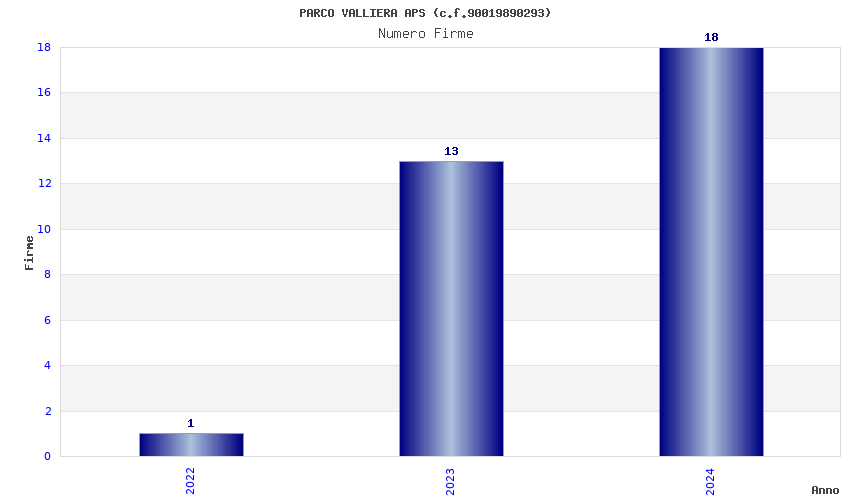 | Anno | Firme | Importi | Media | Naz. | Reg. | Prov. | Comu. |