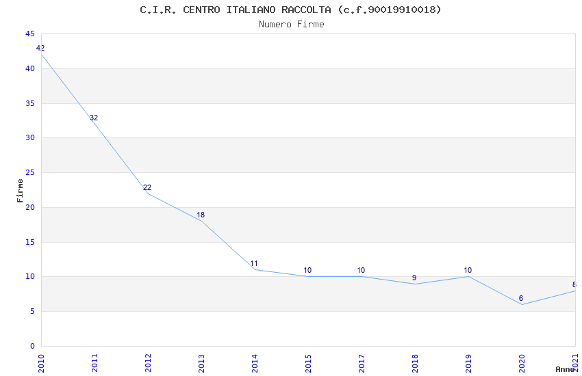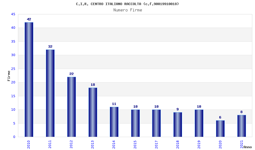 | Anno | Firme | Importi | Media | Naz. | Reg. | Prov. | Comu. |