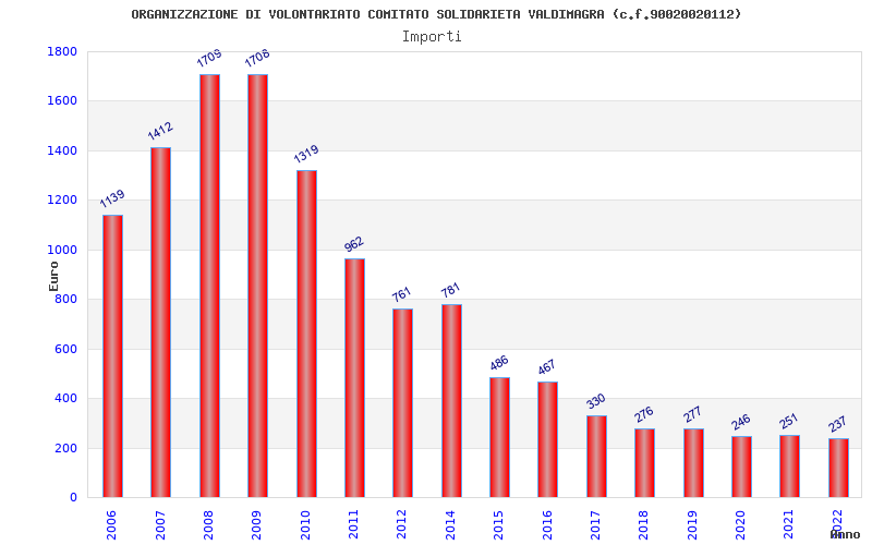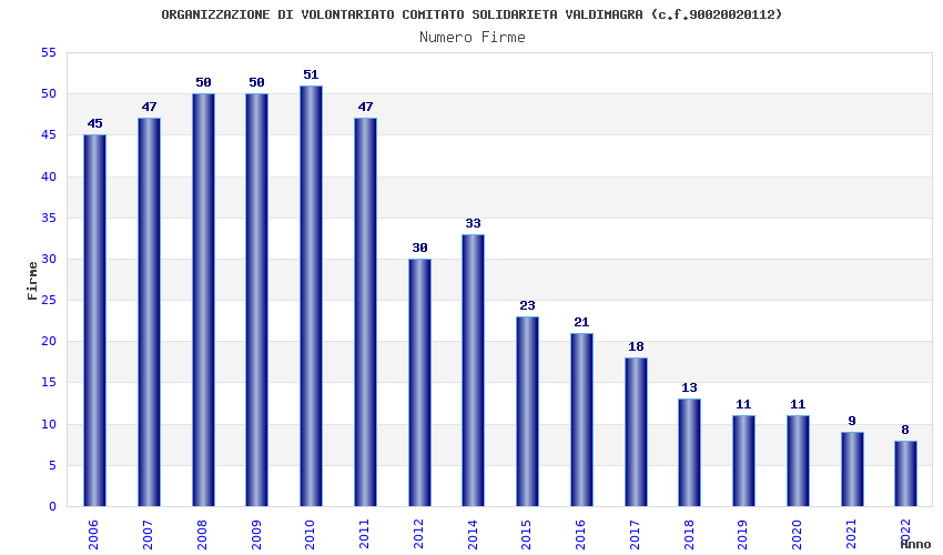 | Anno | Firme | Importi | Media | Naz. | Reg. | Prov. | Comu. |