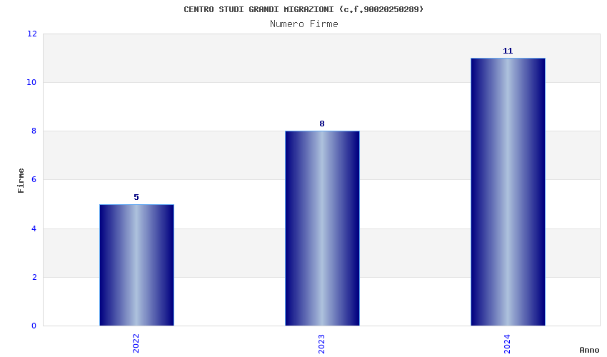 | Anno | Firme | Importi | Media | Naz. | Reg. | Prov. | Comu. |
