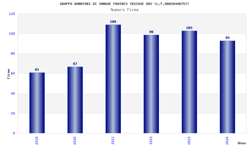 | Anno | Firme | Importi | Media | Naz. | Reg. | Prov. | Comu. |