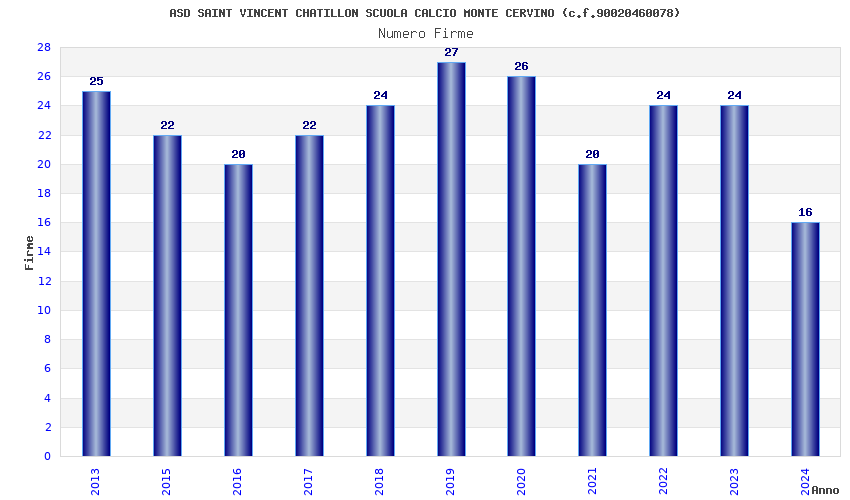 | 2013 | 25 | 873,83 | 34,95 | 28.701 | 131 | 131 | 6 |