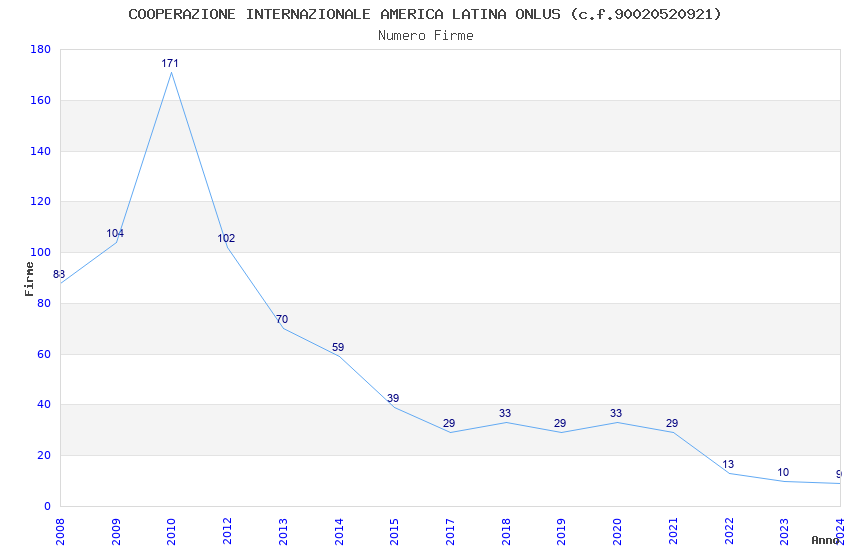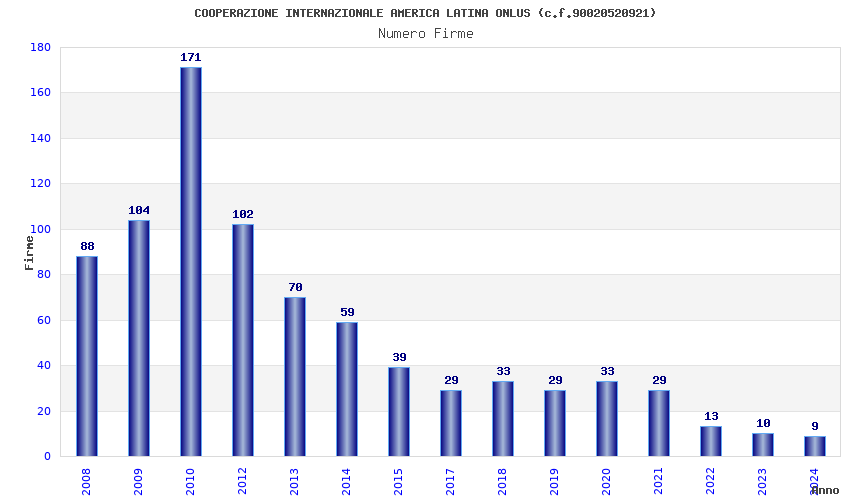 | Anno | Firme | Importi | Media | Naz. | Reg. | Prov. | Comu. |