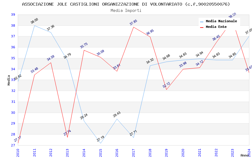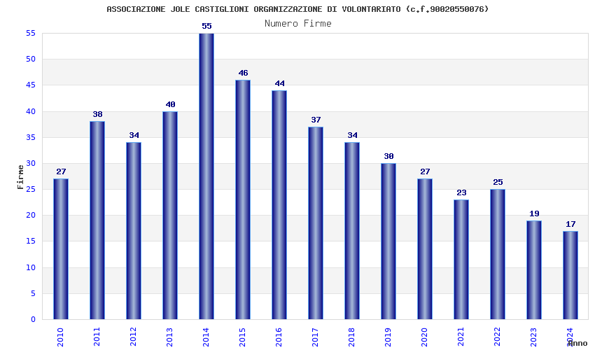 | Anno | Firme | Importi | Media | Naz. | Reg. | Prov. | Comu. |