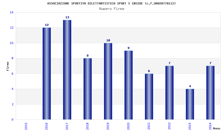 | Anno | Firme | Importi | Media | Naz. | Reg. | Prov. | Comu. |