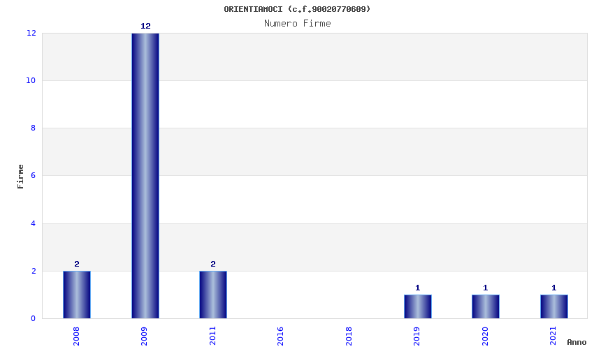 | Anno | Firme | Importi | Media | Naz. | Reg. | Prov. | Comu. |