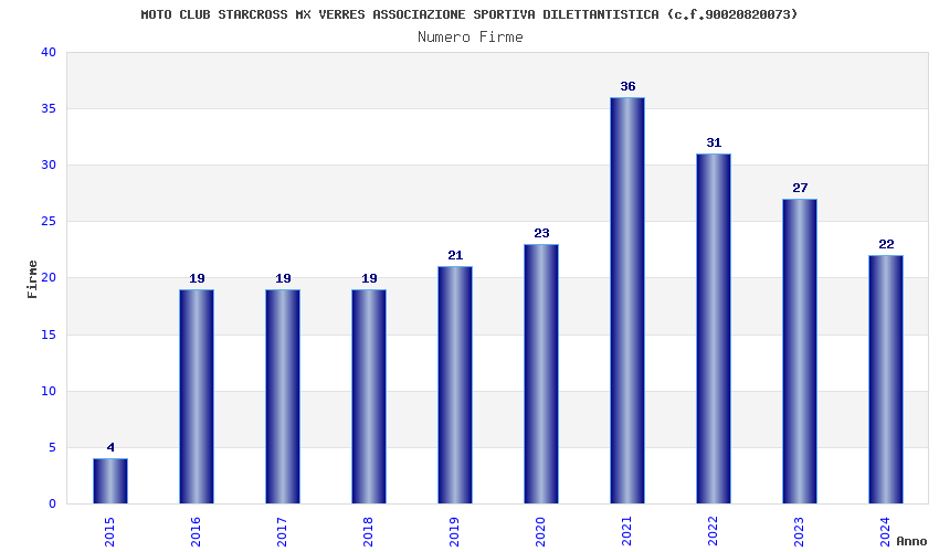 | Anno | Firme | Importi | Media | Naz. | Reg. | Prov. | Comu. |