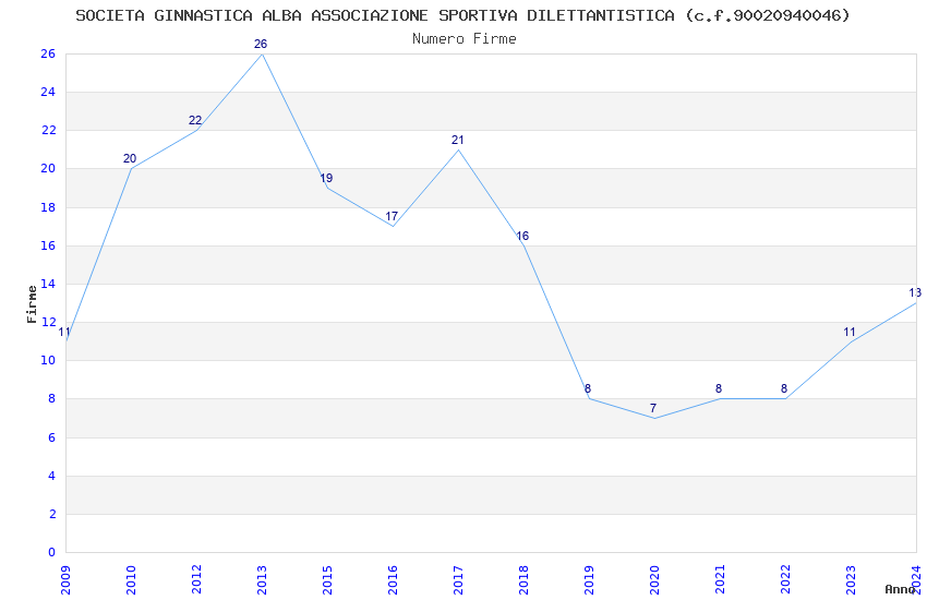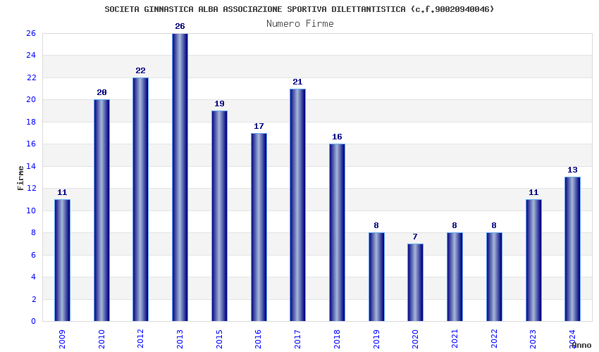 | 2013 | 26 | 1.100,78 | 42,34 | 25.846 | 2.152 | 360 | 29 |
