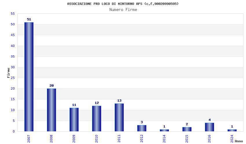 | Anno | Firme | Importi | Media | Naz. | Reg. | Prov. | Comu. |