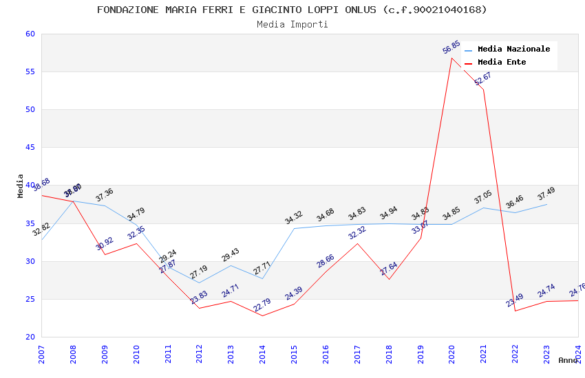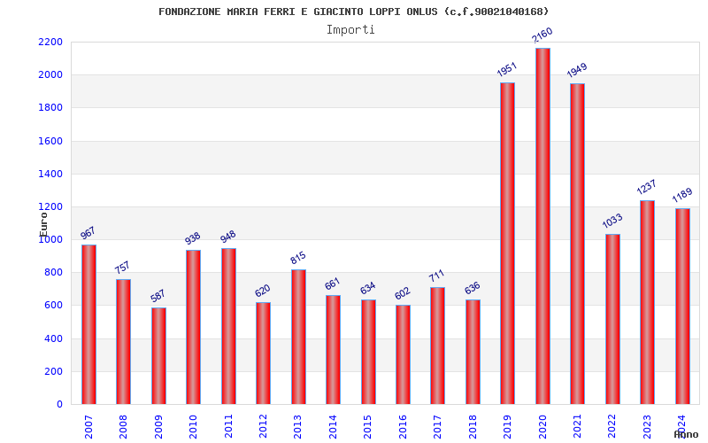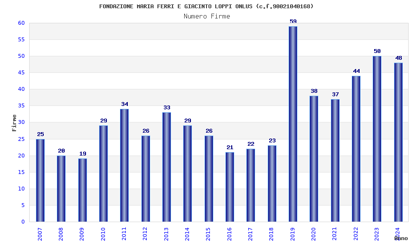 | Anno | Firme | Importi | Media | Naz. | Reg. | Prov. | Comu. |