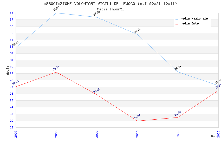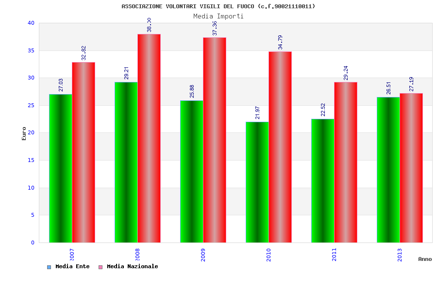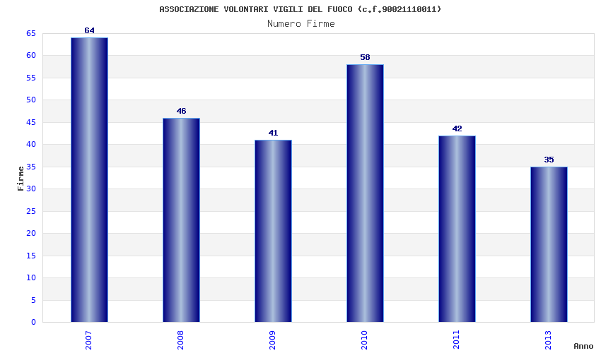 | Anno | Firme | Importi | Media | Naz. | Reg. | Prov. | Comu. |