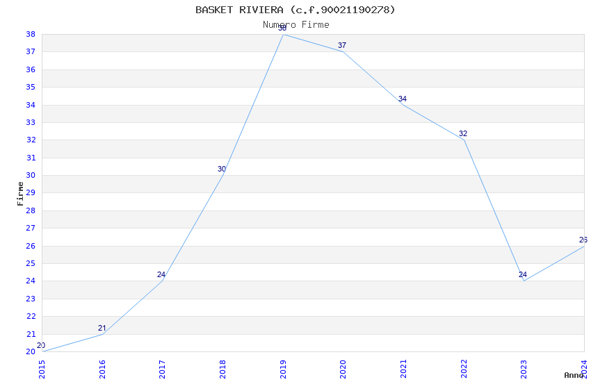 | 2020 | 37 | 1.283,55 | 34,69 | 31.852 | 2.969 | 429 | 5 |