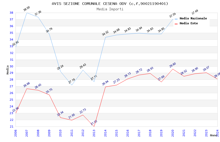 | Anno | Firme | Importi | Media | Naz. | Reg. | Prov. | Comu. |