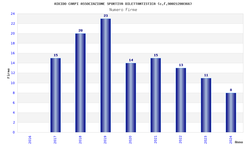 | 2019 | 23 | 497,27 | 21,62 | 45.958 | 4.125 | 545 | 59 |