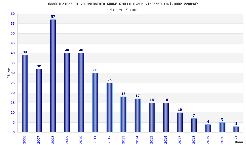 | Anno | Firme | Importi | Media | Naz. | Reg. | Prov. | Comu. |