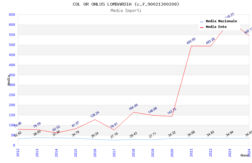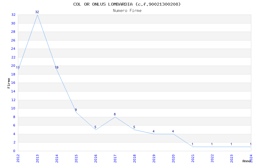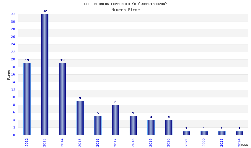 | Anno | Firme | Importi | Media | Naz. | Reg. | Prov. | Comu. |