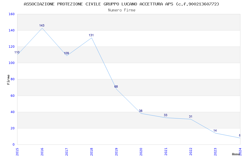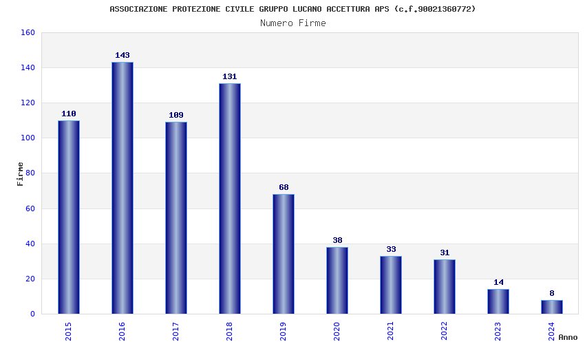 | Anno | Firme | Importi | Media | Naz. | Reg. | Prov. | Comu. |