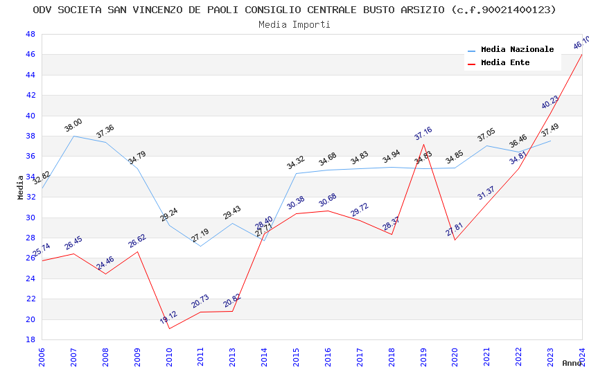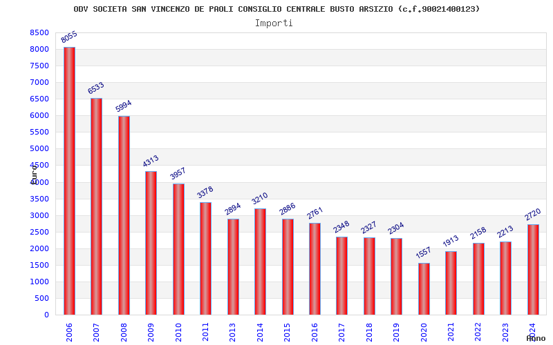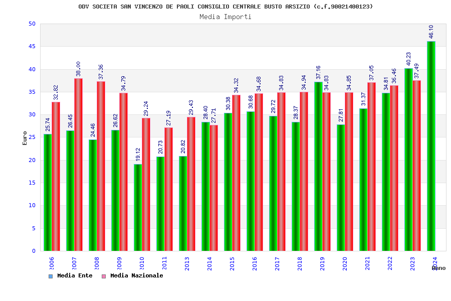 | Anno | Firme | Importi | Media | Naz. | Reg. | Prov. | Comu. |